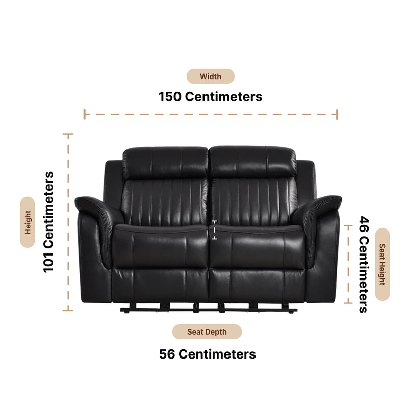 The Cidliano Black Leather 2 Seater Recliner Sofa is designed to bring comfort, luxury, and style into your home. Upholstered in genuine black leather, it feels soft, smooth, and strong. The bold black shade adds elegance and blends beautifully with both classic and modern décor.