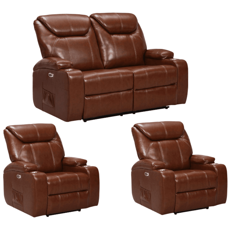 Introducing the Cinema Tan Electric 2+1+1 Seater Leather Recliner Sofa Set With Two Cup Holders, the ultimate cinema sofa crafted in premium tan leather for both style and durability. This luxurious recliner sofa is designed with built-in cup holders and USB chargers, making it the perfect seating solution for home cinema comfort and modern living spaces. Reclining seats allow you to adjust effortlessly for movie marathons, gaming sessions, or everyday relaxation. The Cinema Tan Electric 2+1+1 Seater Leather Recliner Sofa Set With Two Cup Holders blends convenience, sophistication, and practicality, providing a cinema-style experience in your living room.