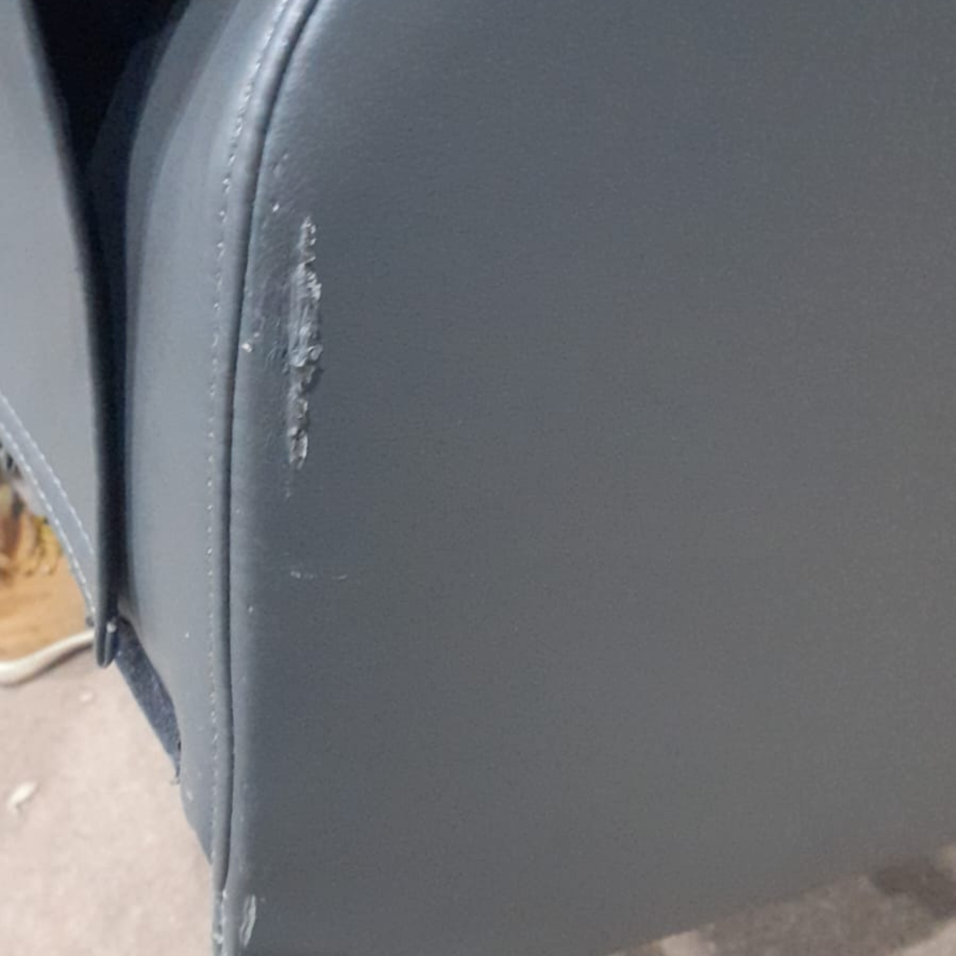 This item is as new, with small cuts on the side, back, and front of the left arm. There are no other damages or marks. The item is sold as-is, with no warranty or returns.